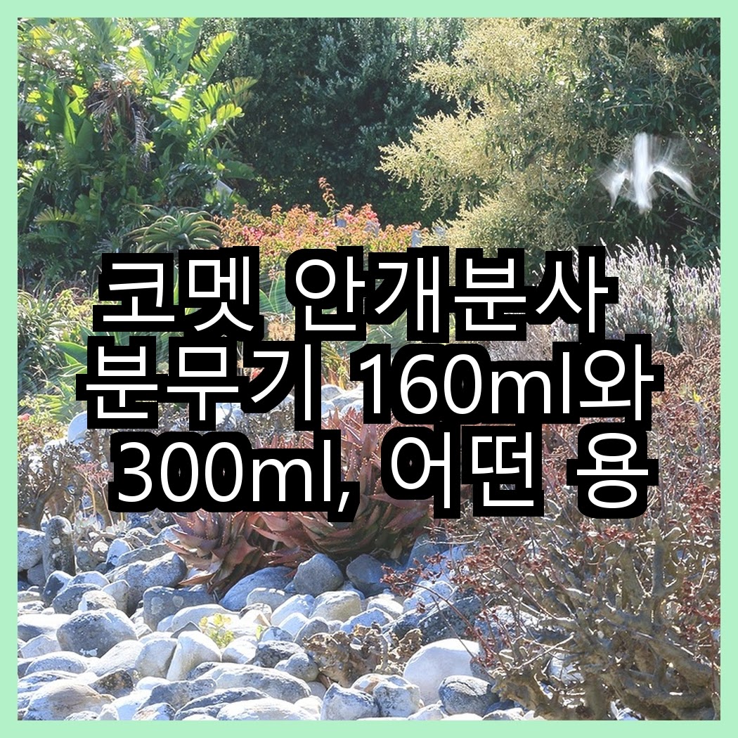 제 경험상, 코멧 안개분사 분무기 160ml는 작은 가정에서의 사용에 적합하더라고요. 반면, 300ml는 더 많은 물을 필요로 하는 상황에서도 활용할 수 있어서 좀 더 다양한 용도로 사용하기 좋아요. 그래서 사용자의 필요에 따라 선택하면 좋을 것 같아요. 정확한 상황에 따라 다를 수 있으니, 본인의 용도에 맞춰 결정하시면 될 것 같아요.